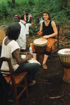 Tina Idiadolernte Djembé spielen während zahlreicher Aufenthalte in Guinea bei dem schon legendären Meistertrommler Famoudou Konate. Zudem arbeitete sie mehrere Jahre mit Famadous Sohn Ibro. Außerdem absolvierte Tina eine dreijährige Intensivausbildung bei Paul Engel. Aktuell lernt sie bei Rainer Polak den Bamakoer Duostil. Zur Zeit spielt sie mit ihrer Gruppe Fankama, mit Jekolo, bei Kalabasch und La Selva Mystica. Dank ihrer langjährigen Unterrichts- und Spielerfahrung kann Euch Tina in ihren Kursen einen behutsamen Einstieg in die faszinierende Welt der afrikanischen Rhythmen bieten. Ihr lernt verschiedene traditionelle Rhythmen für die Djembe und die Basstrommeln Doundoun, Sangban und Kenkeni. Dabei steht der Spaß am Groove immer im Mittelpunkt!